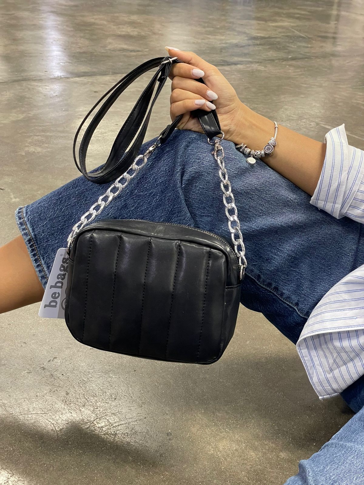 Bolso Abollonado Negro de Rayas Mod. 23 0001