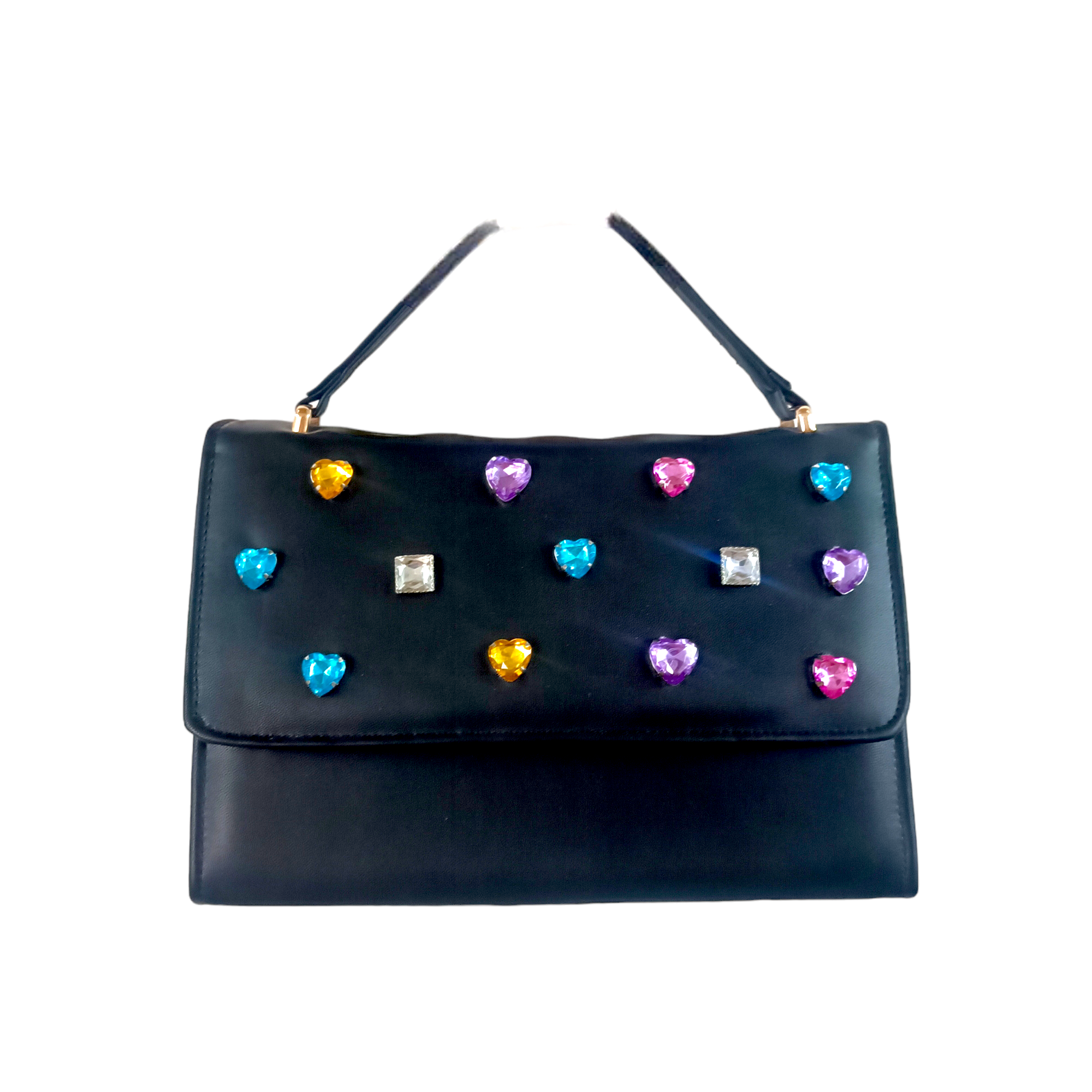 Bolsa Asa delgada Negra con Pedrería Mod. 23 9054
