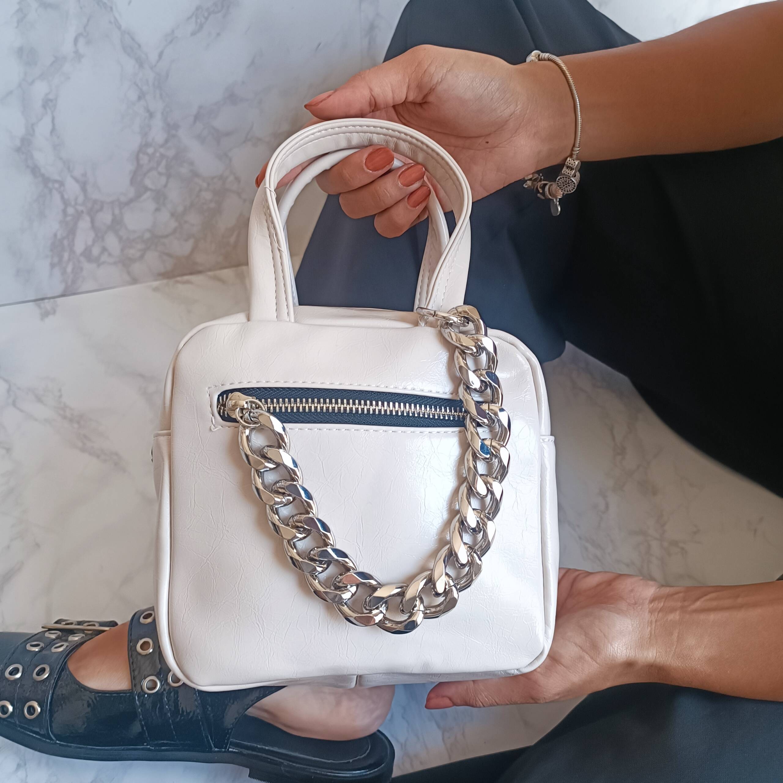 Mini Bolso Latte con Cierre de Cadena Mod. 10 1003