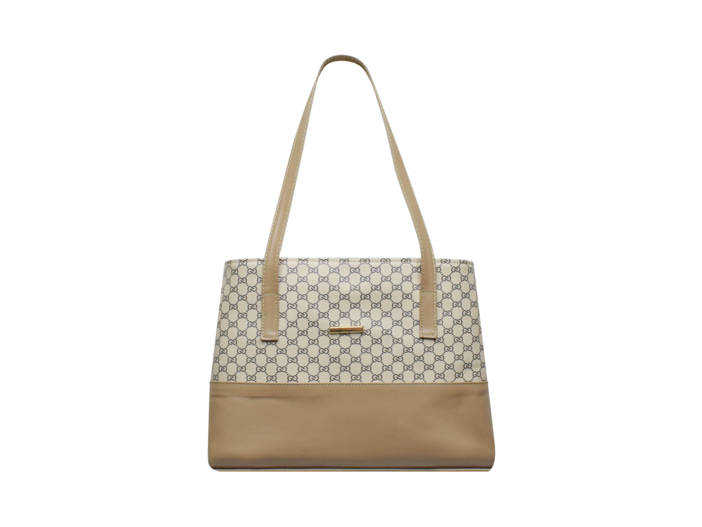 Descripción: Bolsa con doble compartimento fabricada con material sintético y textil, con herrajes en color oro; cuenta con bolsa interna con cierre.