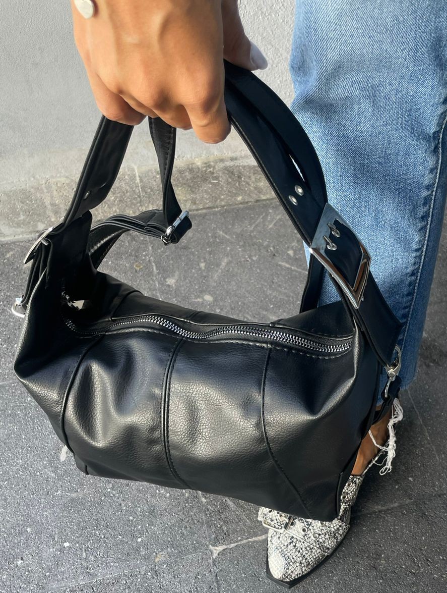 Bolso Negro con Doble Hebillas Mod. 24 9009